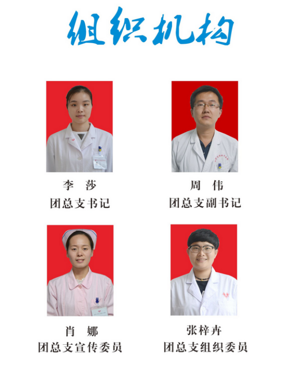 设置团总支书记1人,副书记1人,宣传委员1人,组织委员1人。医院现有职工149人,其中团员青年56人,占比37.6%。